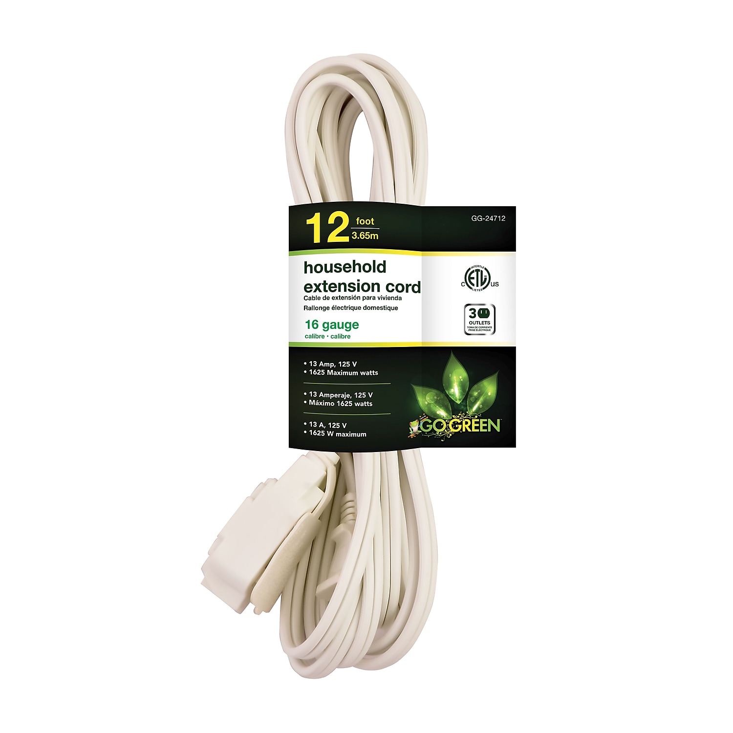 Gogreen Power Gg 24712 16 2 12 Household Extension Cord 3 Outlets White 12 Ft Walmart Com